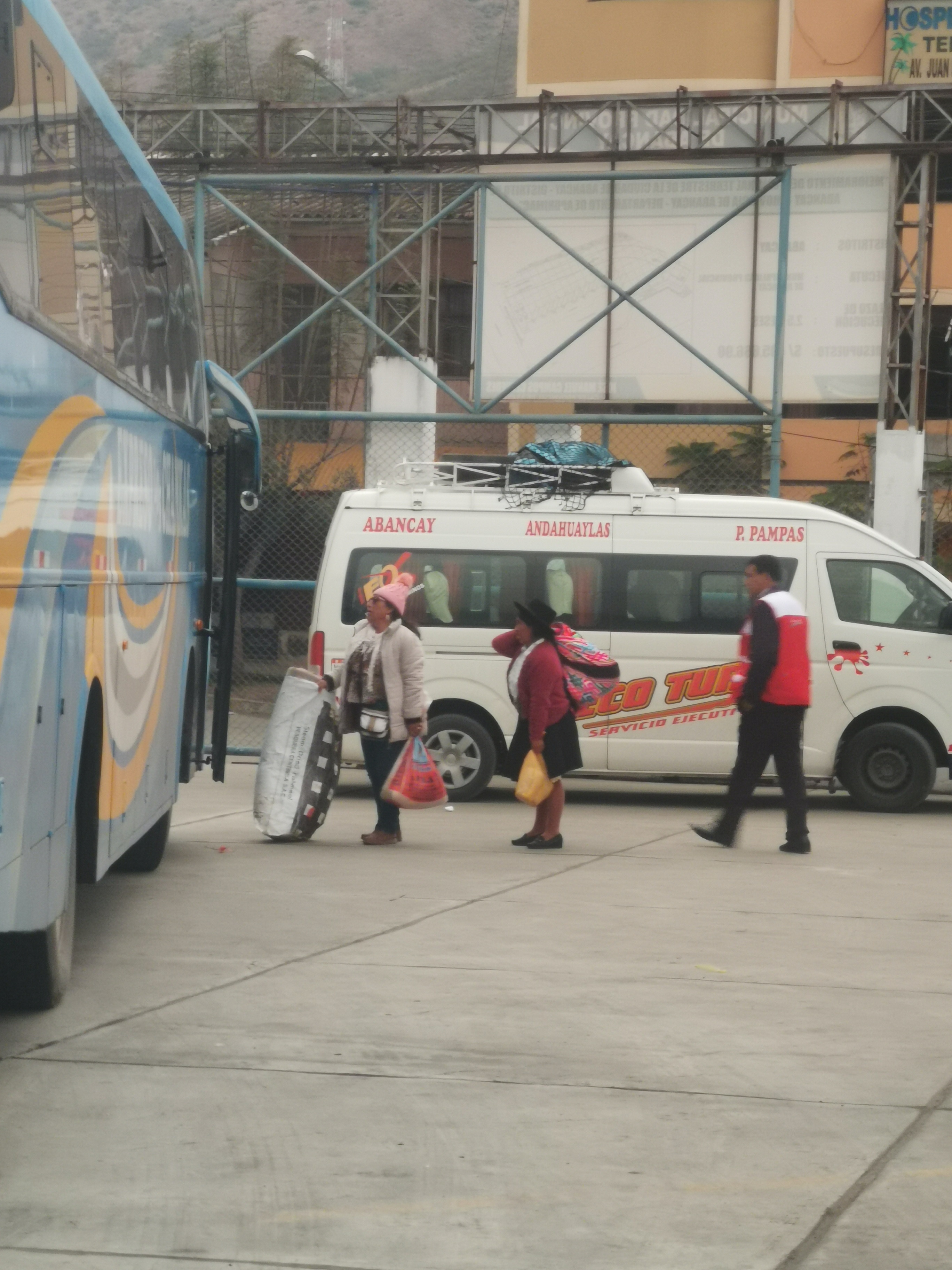 Für mich war die Busfahrt anstrengend, weil es mir schwer fiel, auf den Sitzen zu schlafen. Trotz Liegeposition starrte ich die meiste Zeit auf mein iPad und las einige Readly-Zeitschriften oder schaute Prime-Serien. Dann und wann fiel mein Blick aus dem Fenster, aber da es stockdunkel war, konnte ich nichts erkennen. So sagte mir lediglich das beständige Schaukeln, dass wir uns inzwischen auf den berüchtigten Bergstraßen befinden mussten. Erst nach Anbruch des neuen Tages wurde es interessanter, Szenerien der durchfahrenden Dörfer, Schulkinder auf dem Weg zum Unterricht, unzählige mit Spraydosen auf Mauern gesprühte Wahlslogans – man bekam einen Einblick in das ländlichere Peru, spannend, aber auch etwas abschreckend. Eine andere Welt.